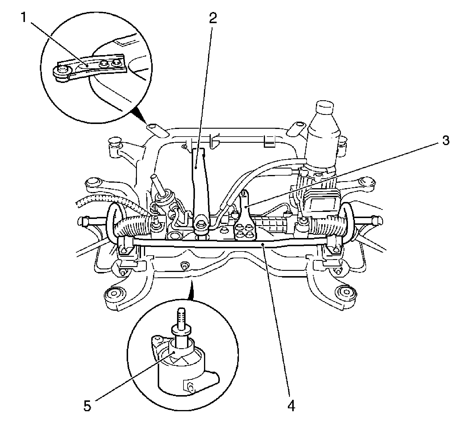 1. Install a new damping bushings in front frame. Refer to Drivetrain and Front Suspension Frame Front Insulator Replacement (Service and Repair).