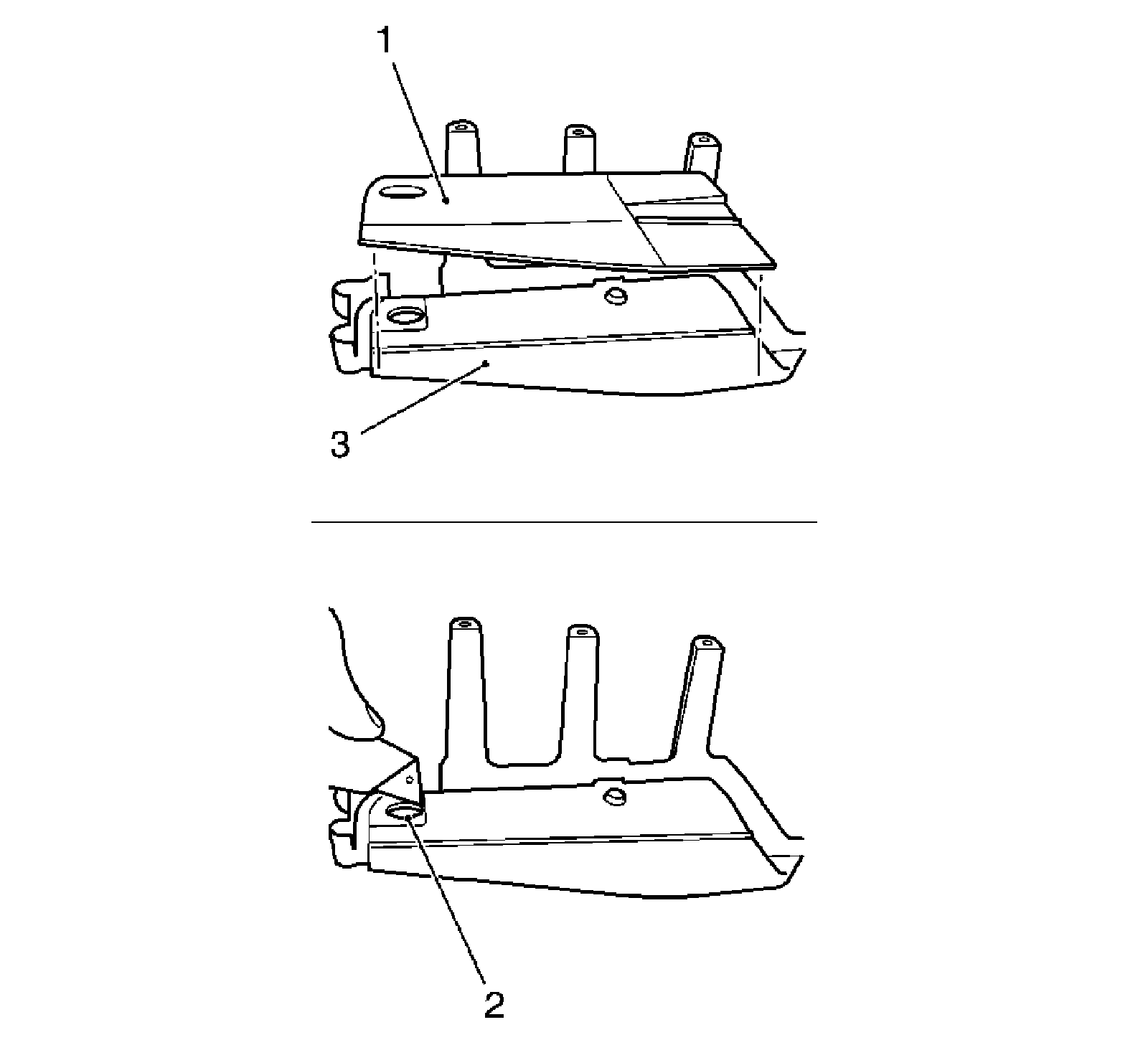 2. Install service threaded rods (2) into retaining clip (1) to guide expansion valve.