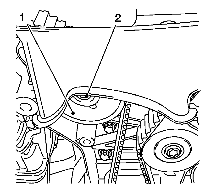 6. Remove the drive belt tensioner. Refer to Drive Belt Tensioner Replacement (Service and Repair).