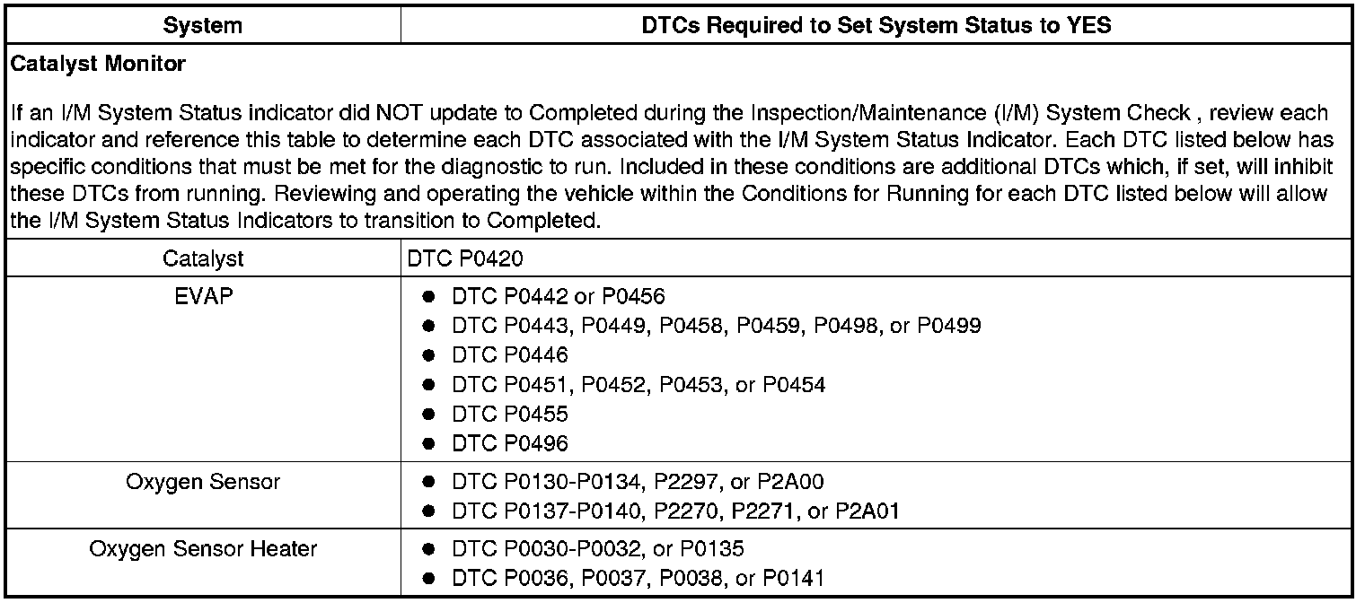 Inspection/Maintenance (I/M) System DTC Table