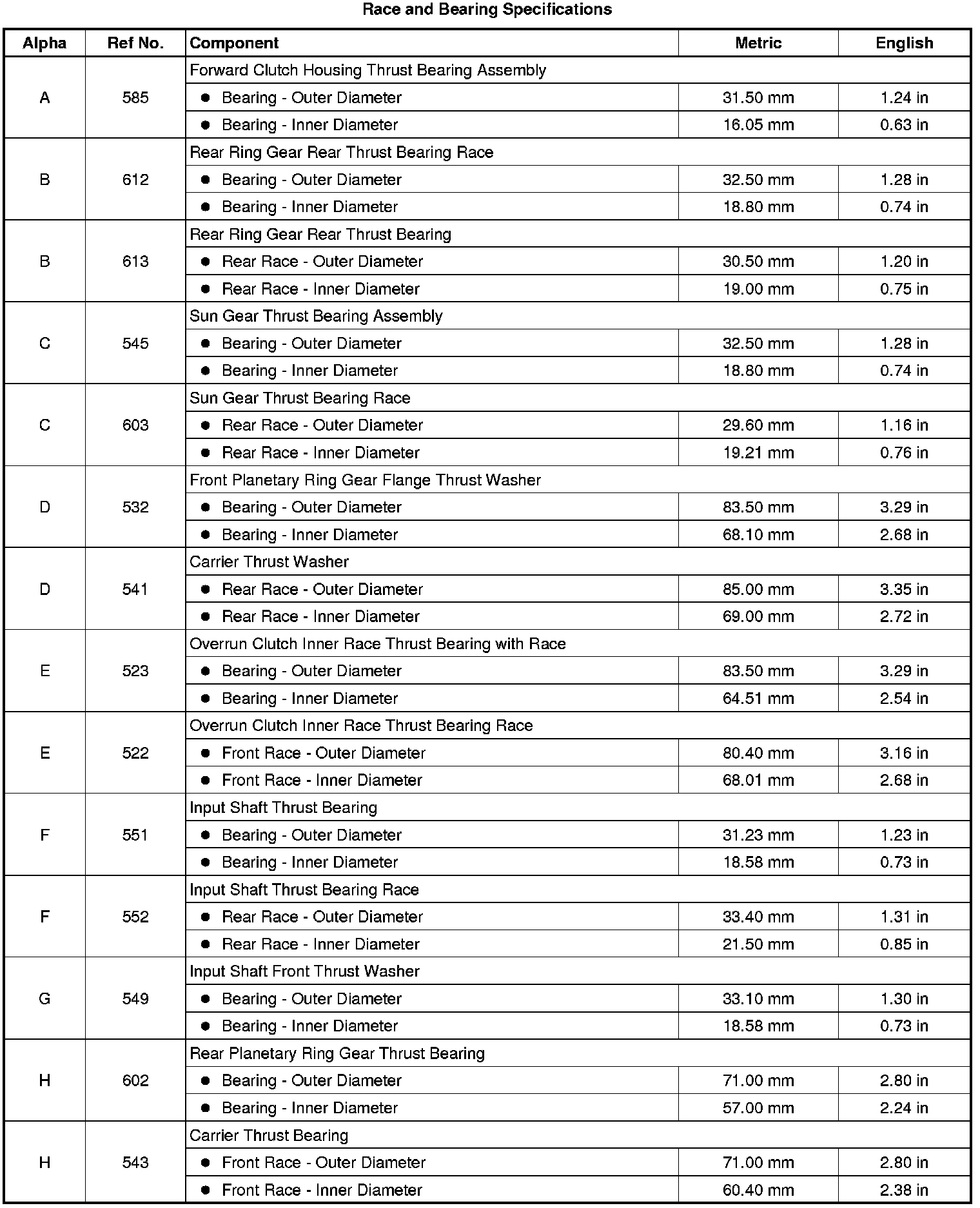 Race and Bearing Specifications