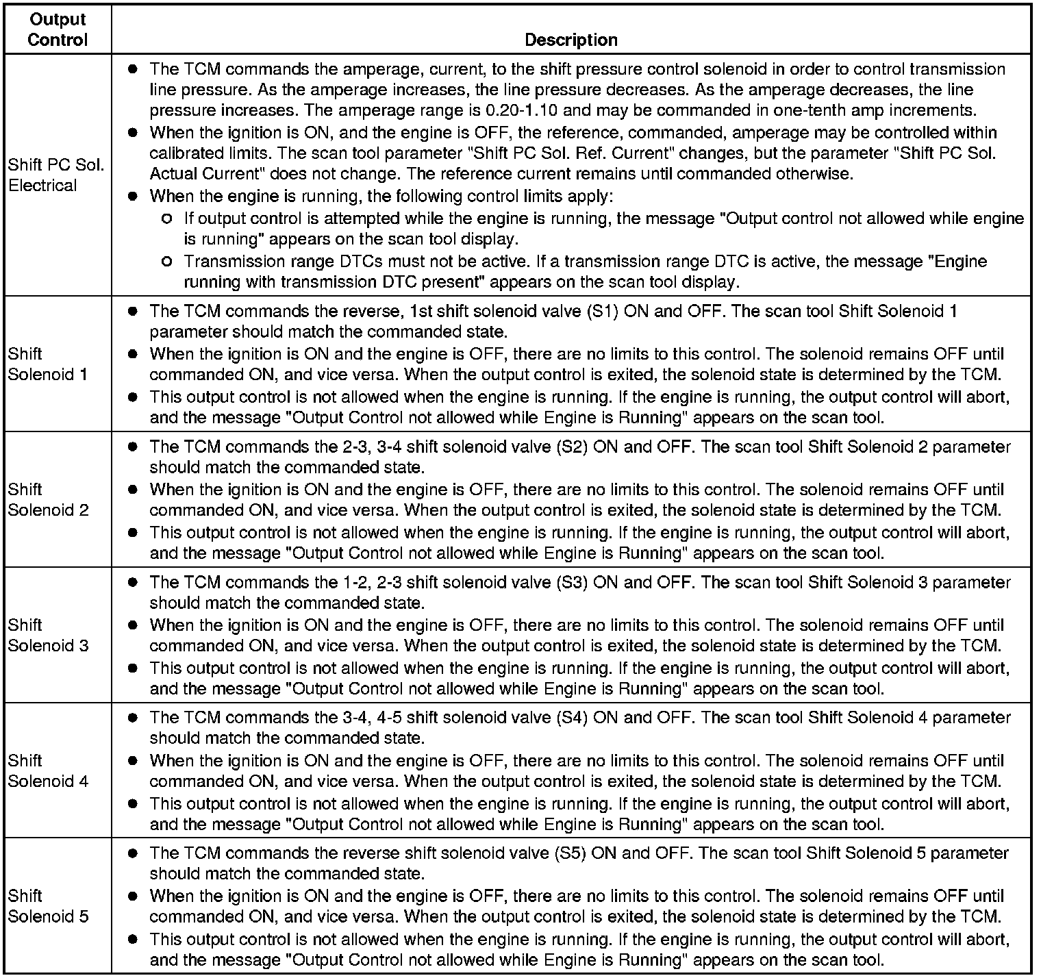 The Transmission Control Module Scan Tool Data List contains all transmission related parameters that are available on the scan tool. The list is arranged in alphabetical order. A given parameter may appear in any one of the data lists, and in some cases may appear more than once, or in more than one data list in order to group certain related parameters together.