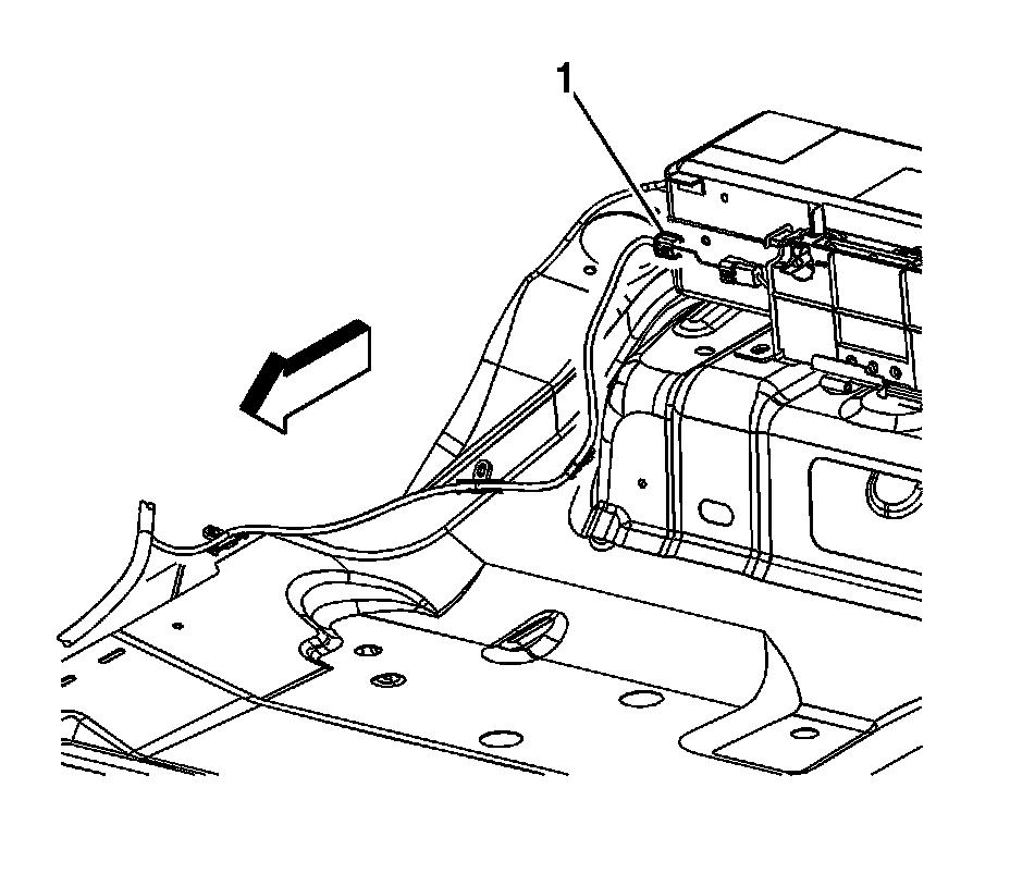9. Disconnect the body wiring harness electrical connector (1) from the generator battery disconnect control module pigtail.