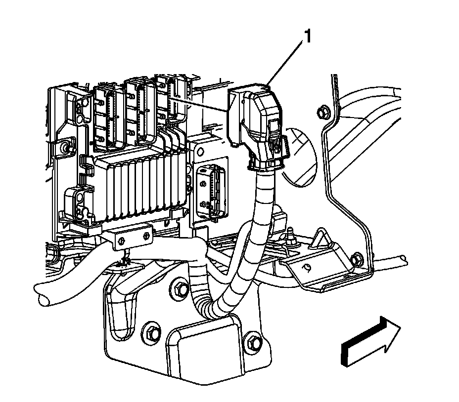 4. Connect the body wiring harness electrical connector (1) to the ECM.
