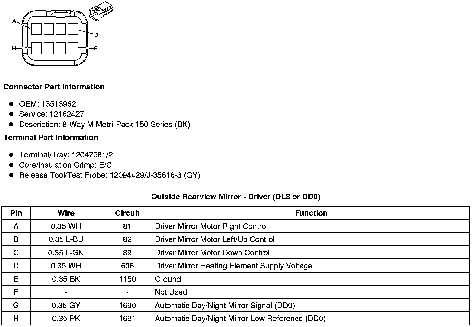 Outside Rearview Mirror - Driver (DL8 or DD0)