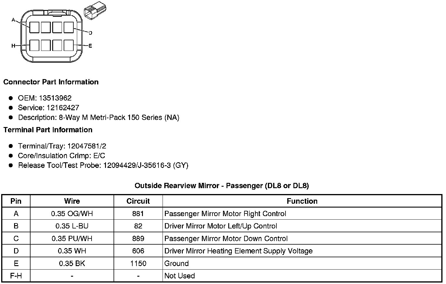 Outside Rearview Mirror - Passenger (DL8 or DL8)