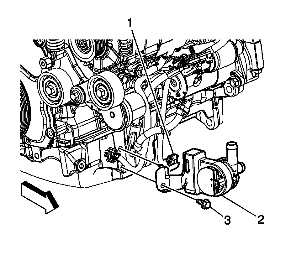 28. LAT only, remove the generator control module coolant pump bolt (3) and pump (2).