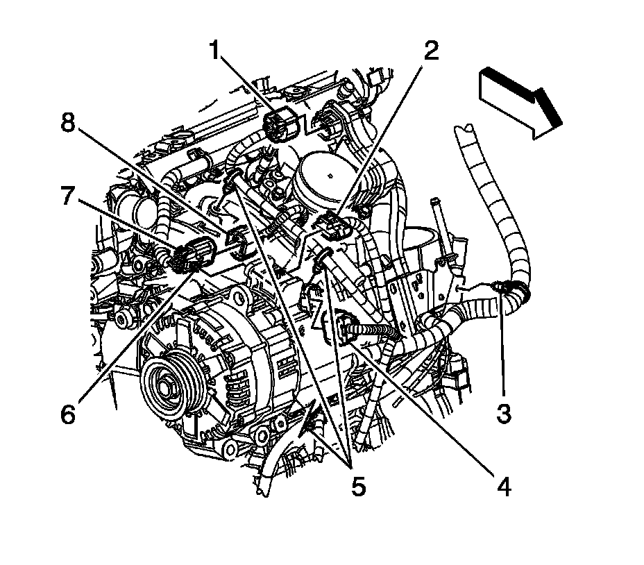 67. Disconnect the engine wiring harness electrical connector (8) from the fuel injector wiring harness electrical connector (7).