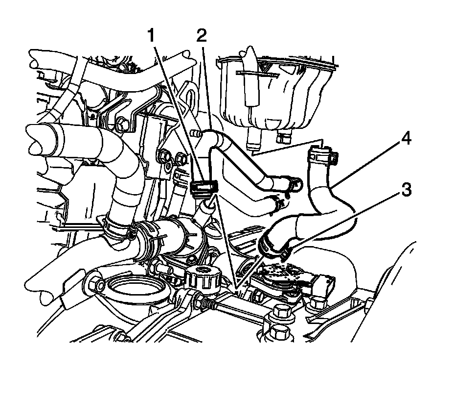 23. Remove the coolant recovery reservoir/heater inlet hose (4) from the thermostat housing.
