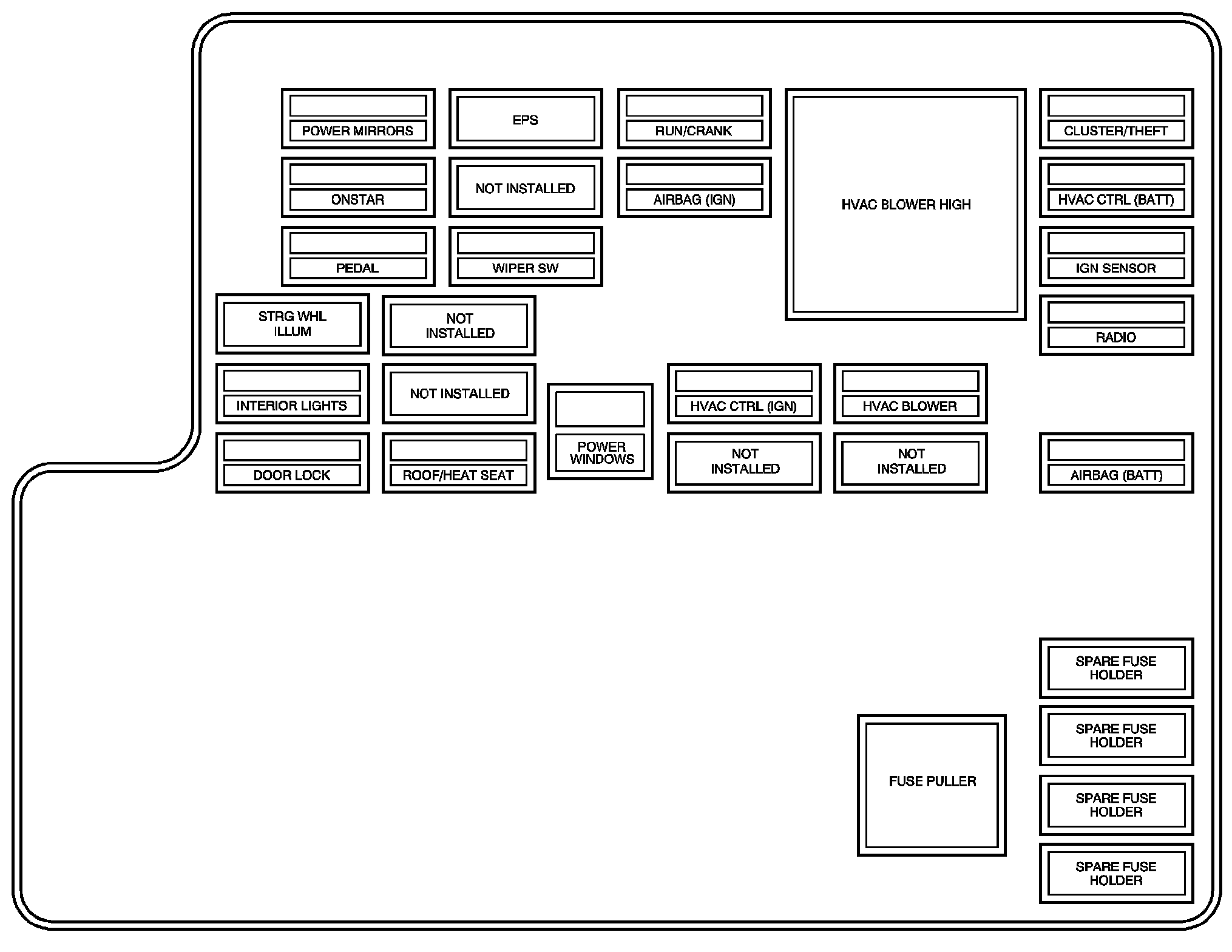 The instrument panel fuse block is located on the instrument panel near the floor on the passenger side of the vehicle.