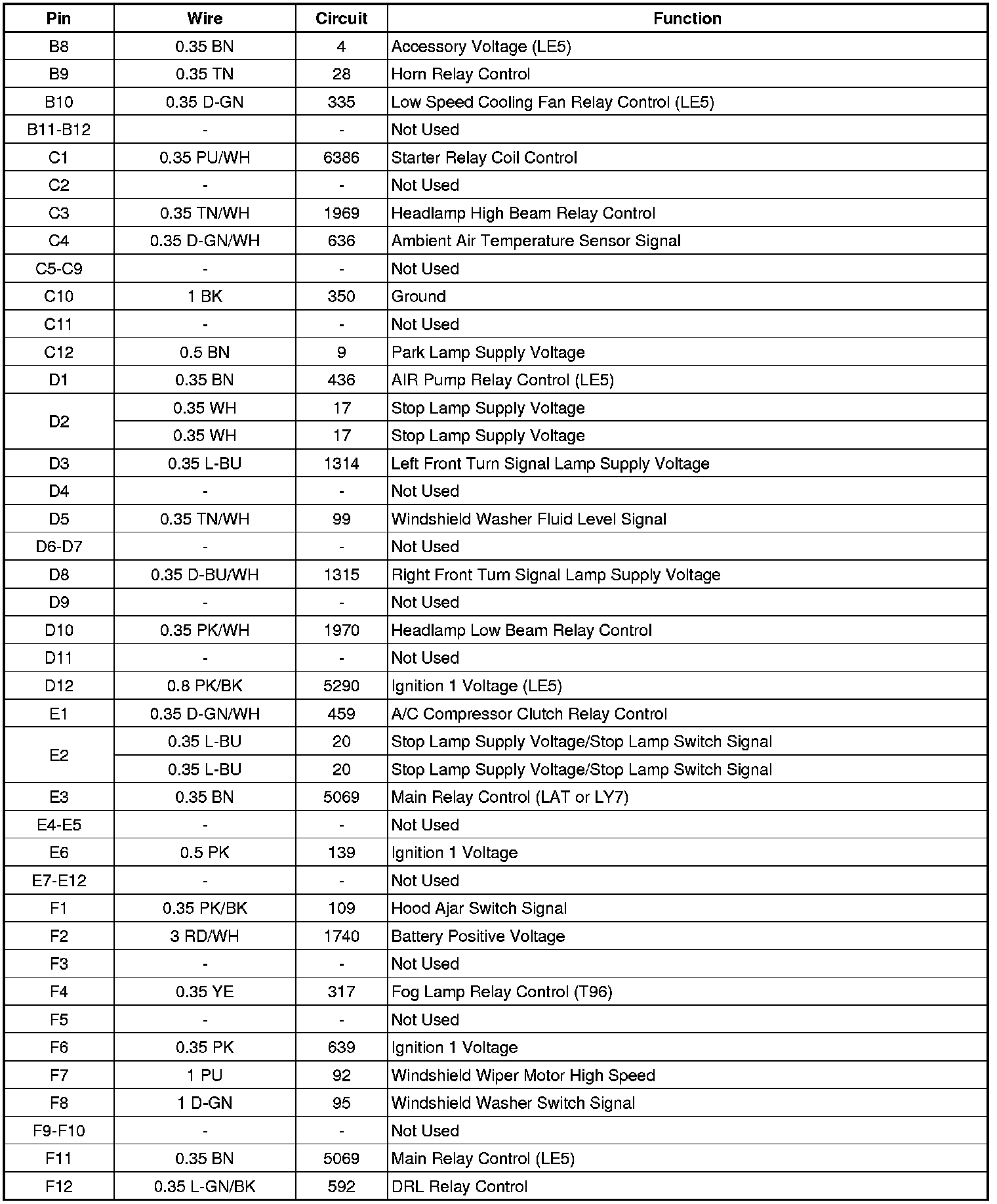 Fuse Block - Underhood Bottom View