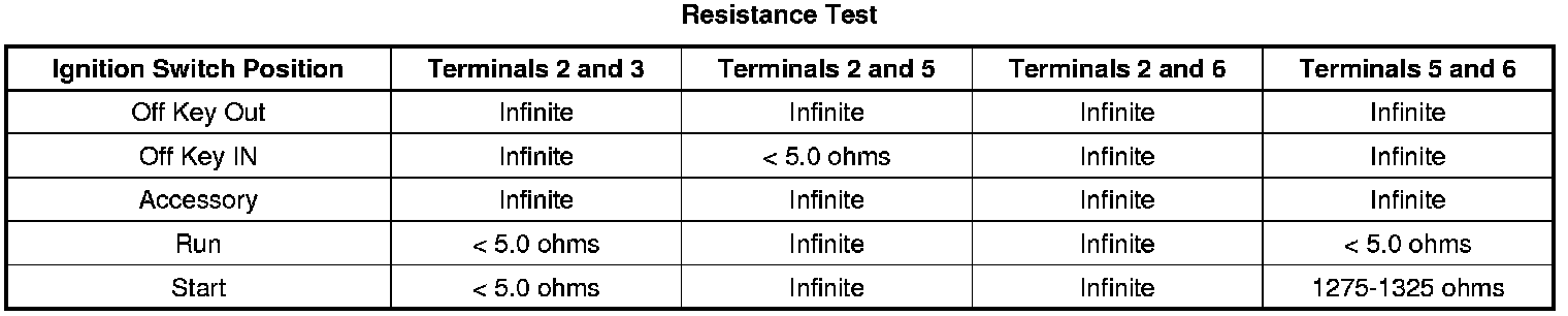 2. Verify the resistance between the terminals listed below match for each ignition switch position.