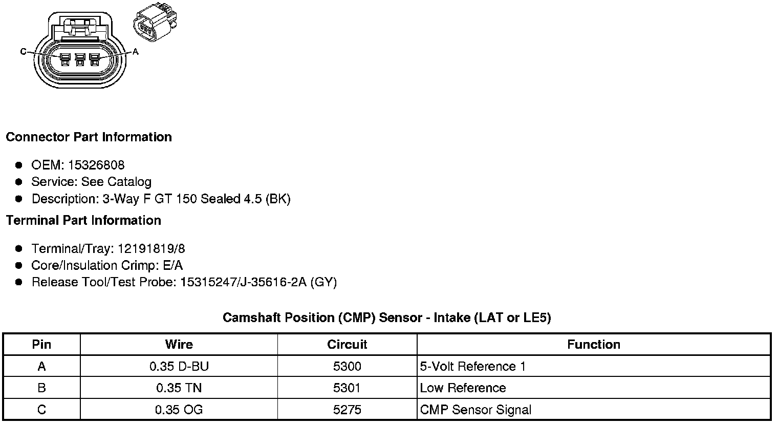 Camshaft Position (CMP) Sensor - Intake (LAT or LE5)