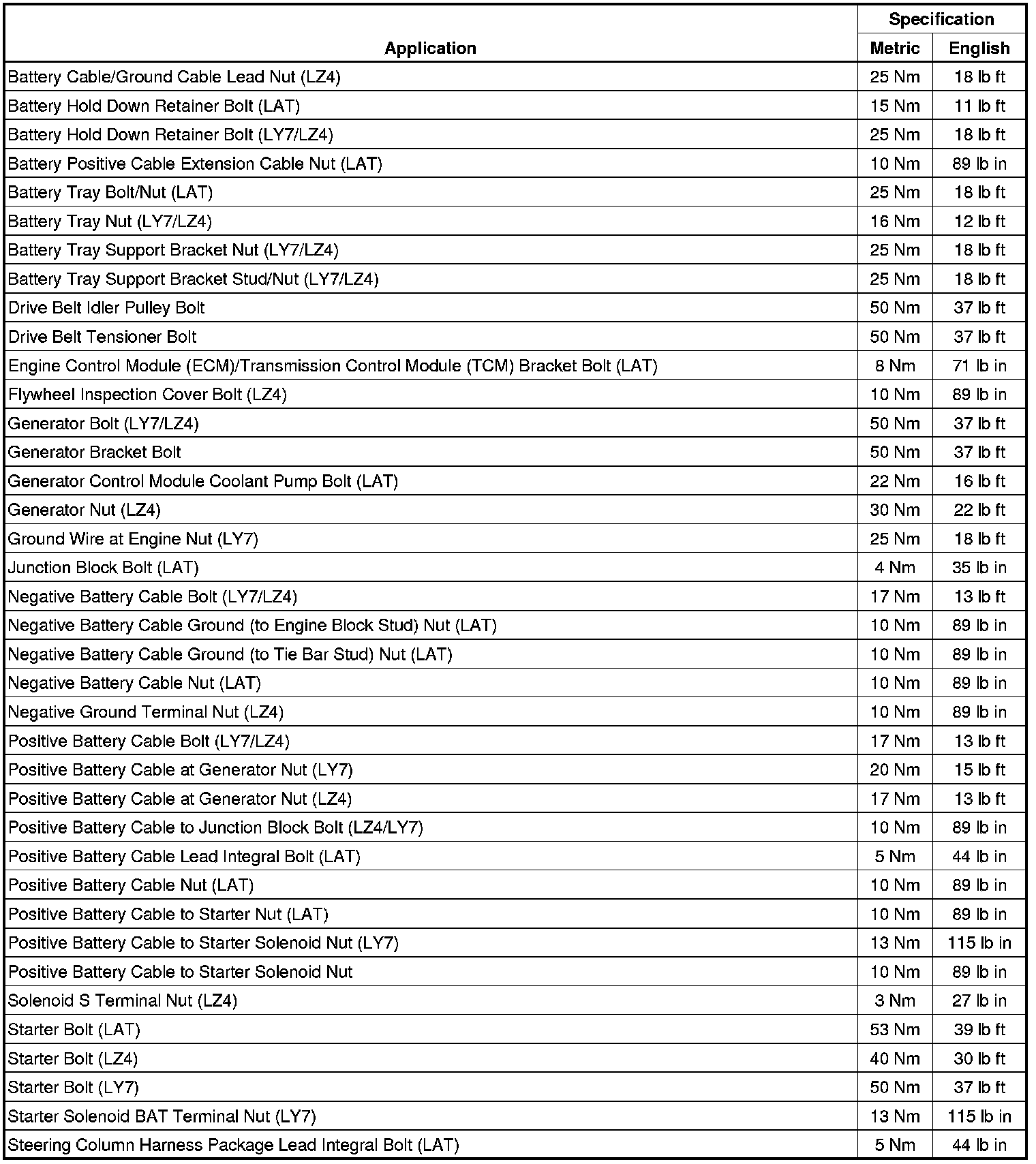 Fastener Tightening Specifications