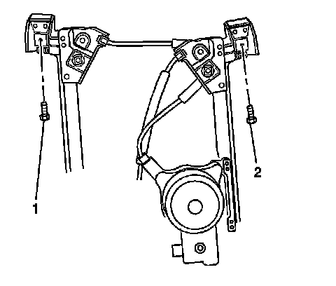 4. Remove the bolts (1, 2) that attach the window to the regulator.