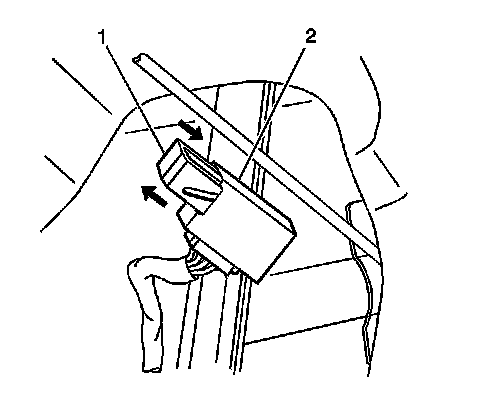 Lower the window far enough in order to gain access to the bolts (1, 2) that attach the window to the regulator.