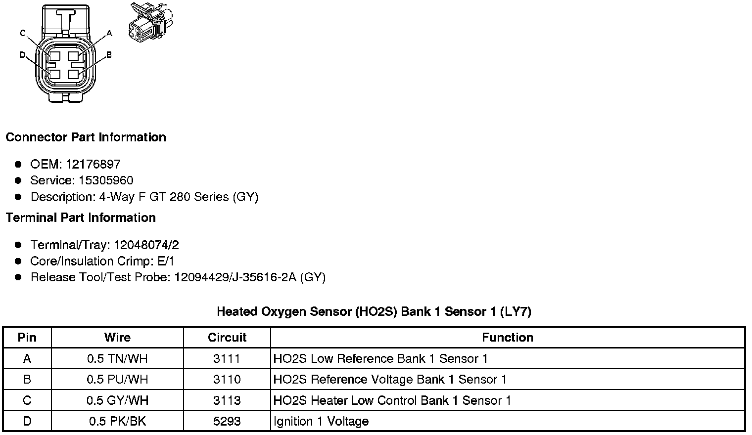 Heated Oxygen Sensor (HO2S) Bank 1 Sensor 1 (LY7)