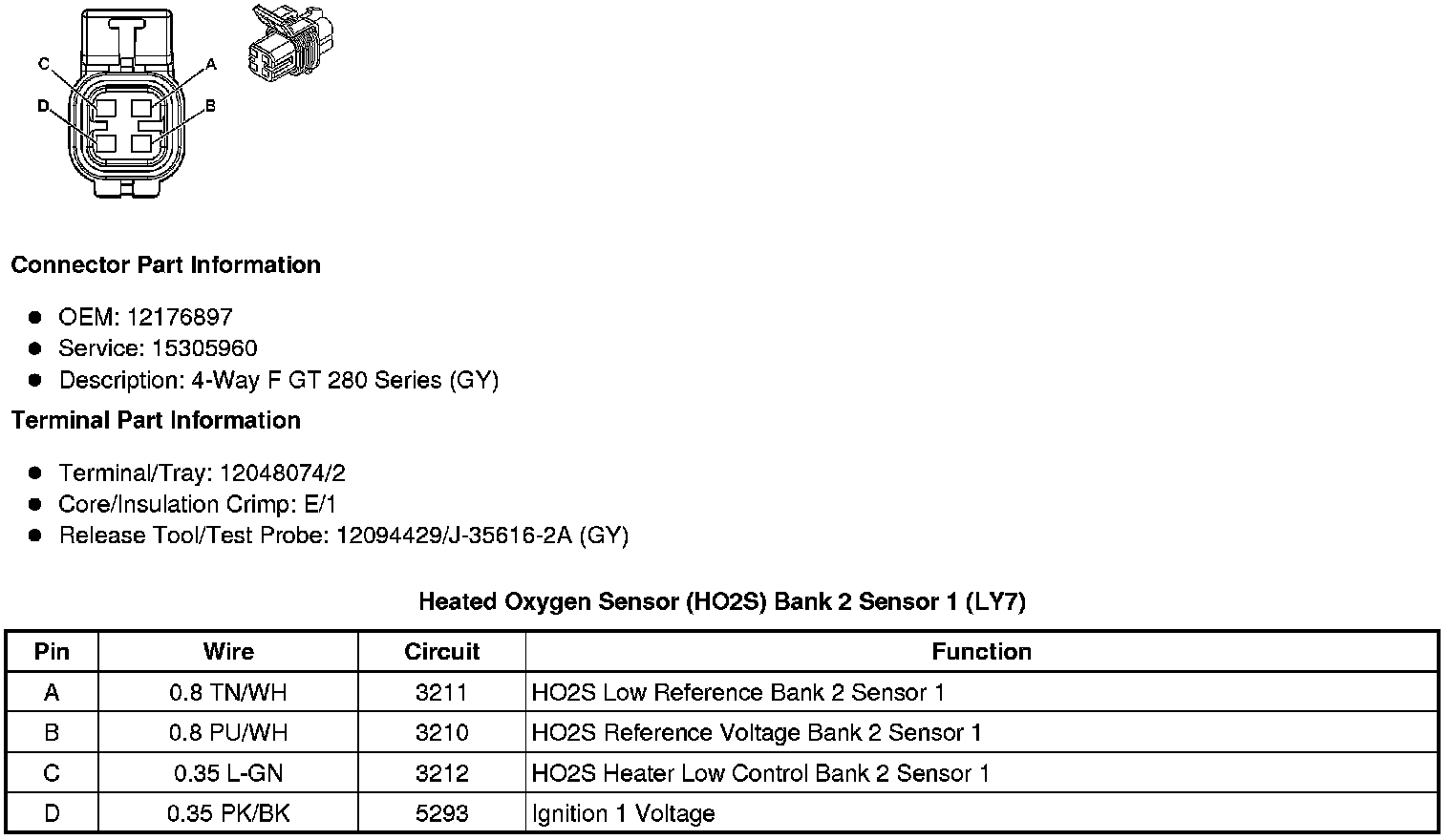 Heated Oxygen Sensor (HO2S) Bank 2 Sensor 1 (LY7)