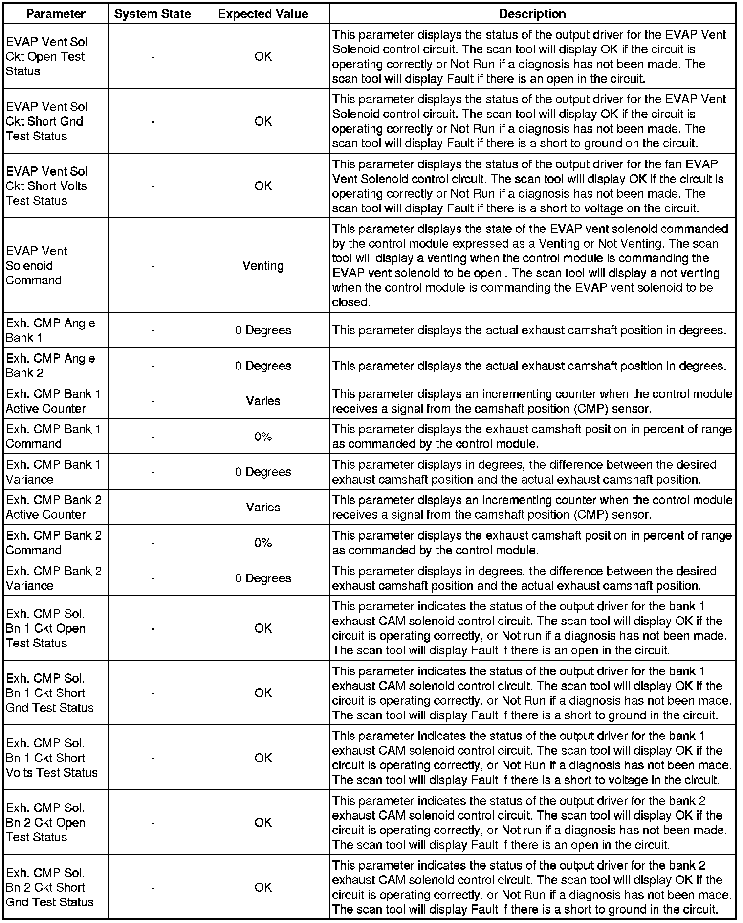 The Engine Control Module Scan Tool Data List contains all engine-related parameters that are available on the scan tool. The list is arranged in alphabetical order. A given parameter may appear in any one of the data lists, and in some cases may appear more than once, or in more than one data list in order to group certain related parameters together.