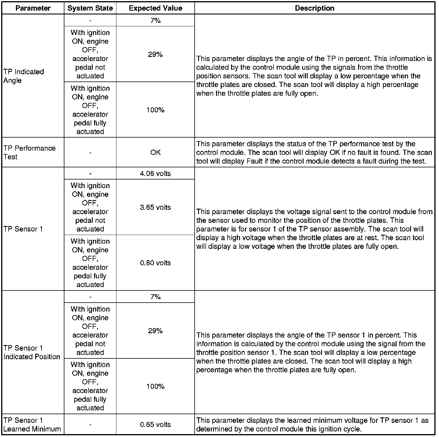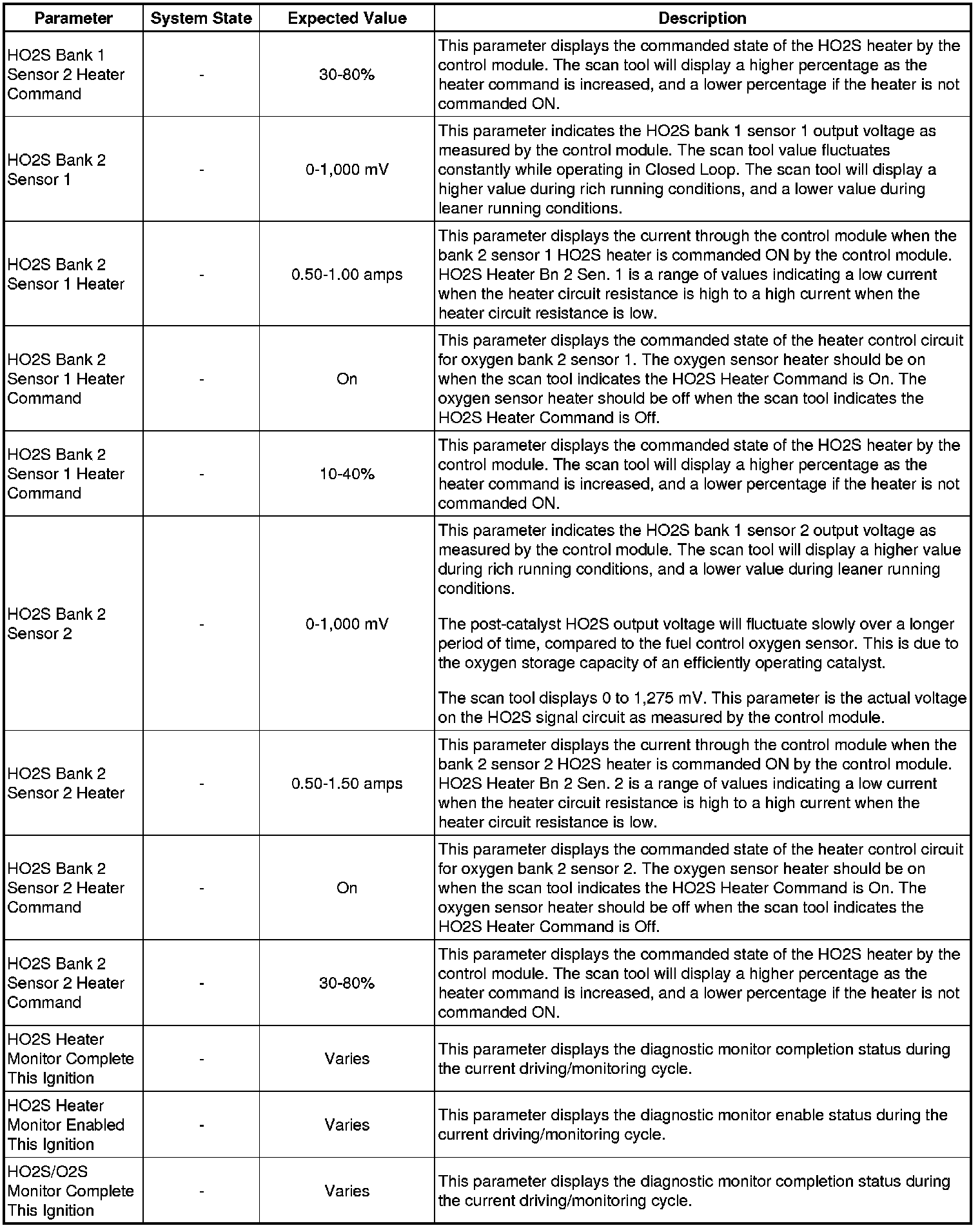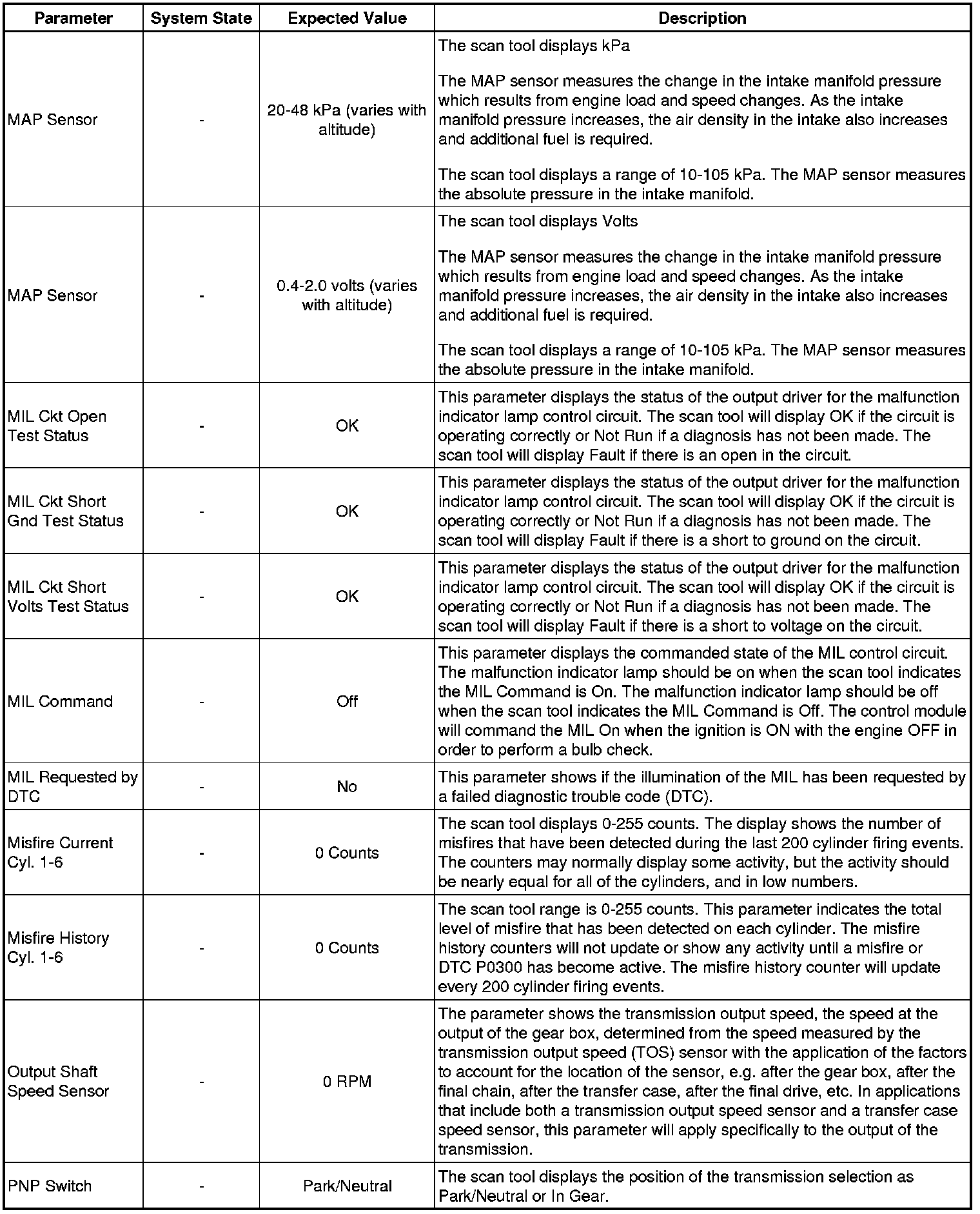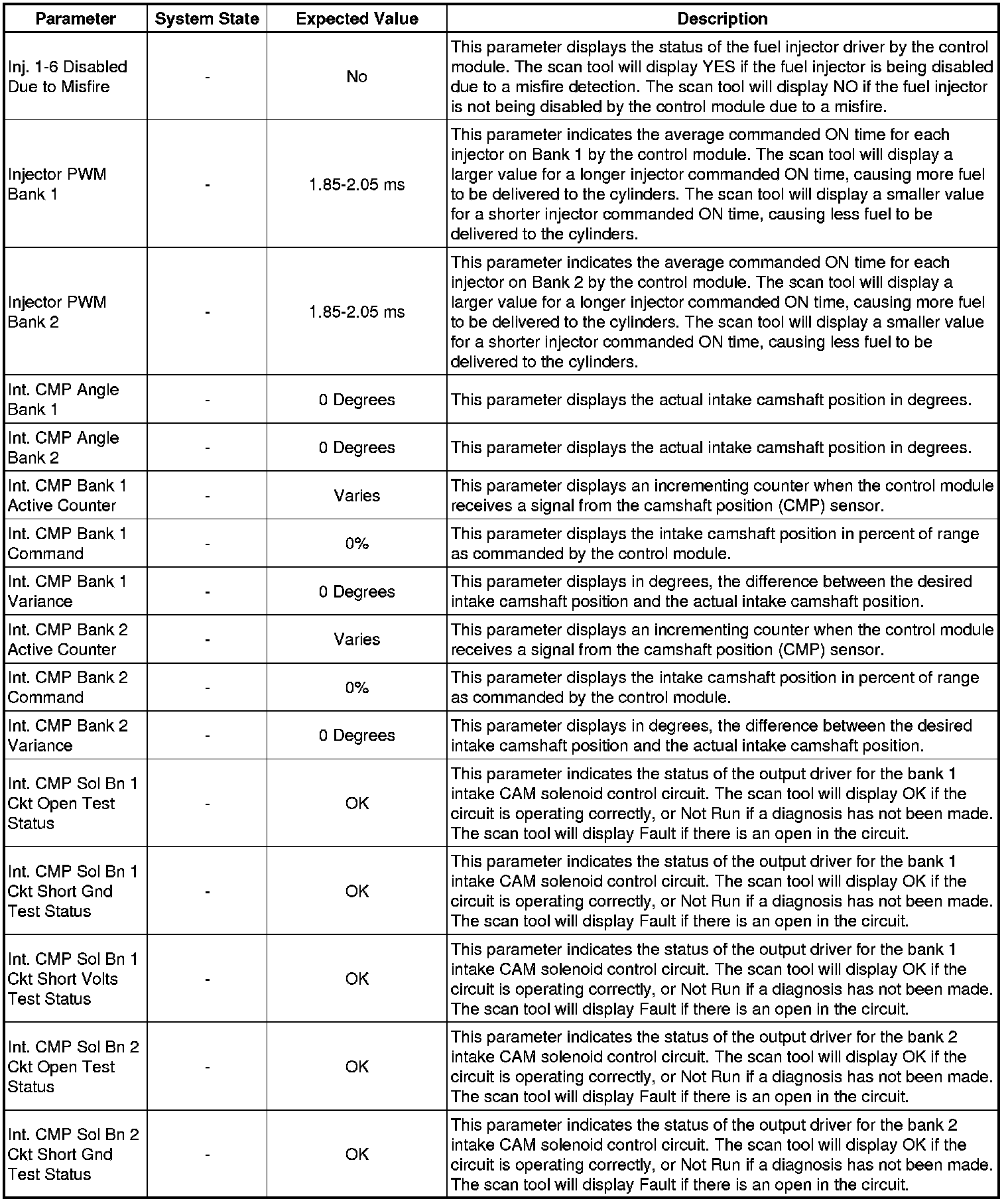 Only the parameters listed below are referenced in this service manual for use in diagnosis. If all values are within the typical range described below, refer to Symptoms - Engine Controls (- Symptoms - Engine Controls) for diagnosis.