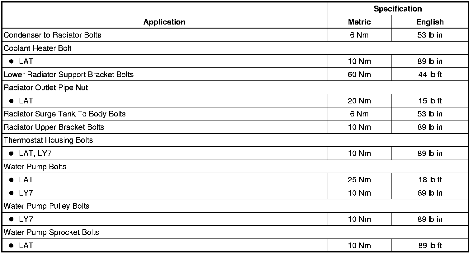 Fastener Tightening Specifications