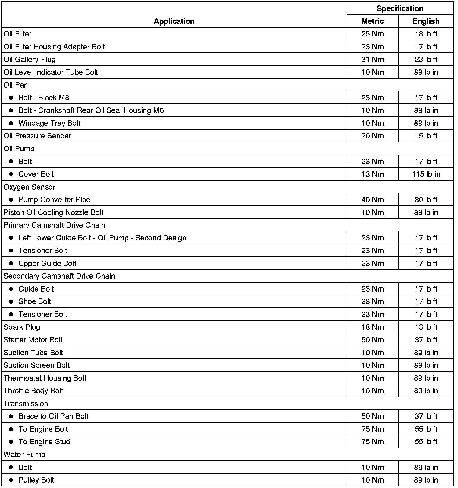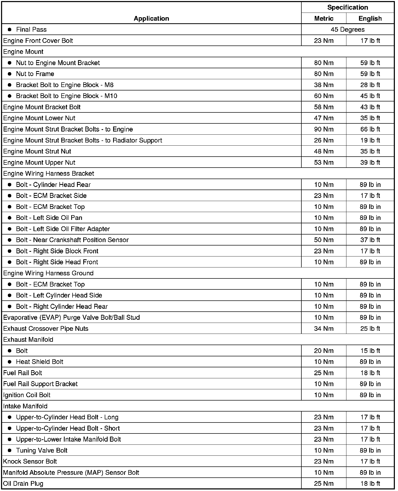 Fastener Tightening Specifications
