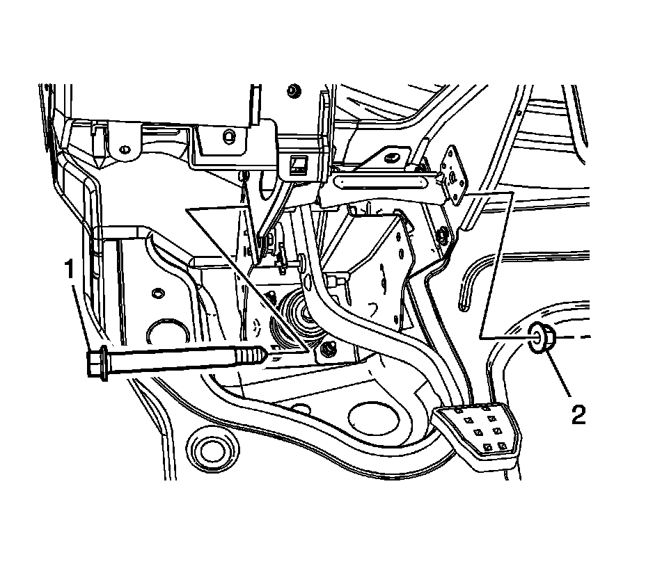 3. Remove the clutch pedal assembly, if equipped, for removal of the brake pedal pivot bolt. Refer to Clutch Pedal Replacement (Clutch Pedal Replacement).