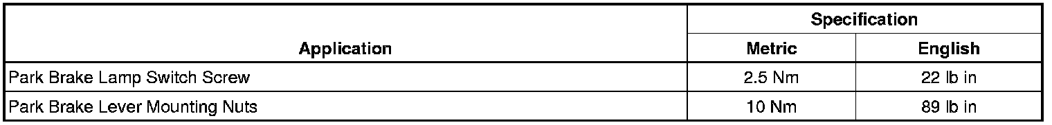 Parking Brake System: Specifications
