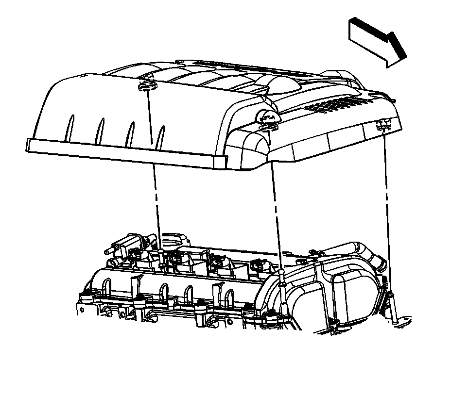 1. Grasp the intake manifold cover by the front right corner and pull up in order to disengage the cover from the stud.