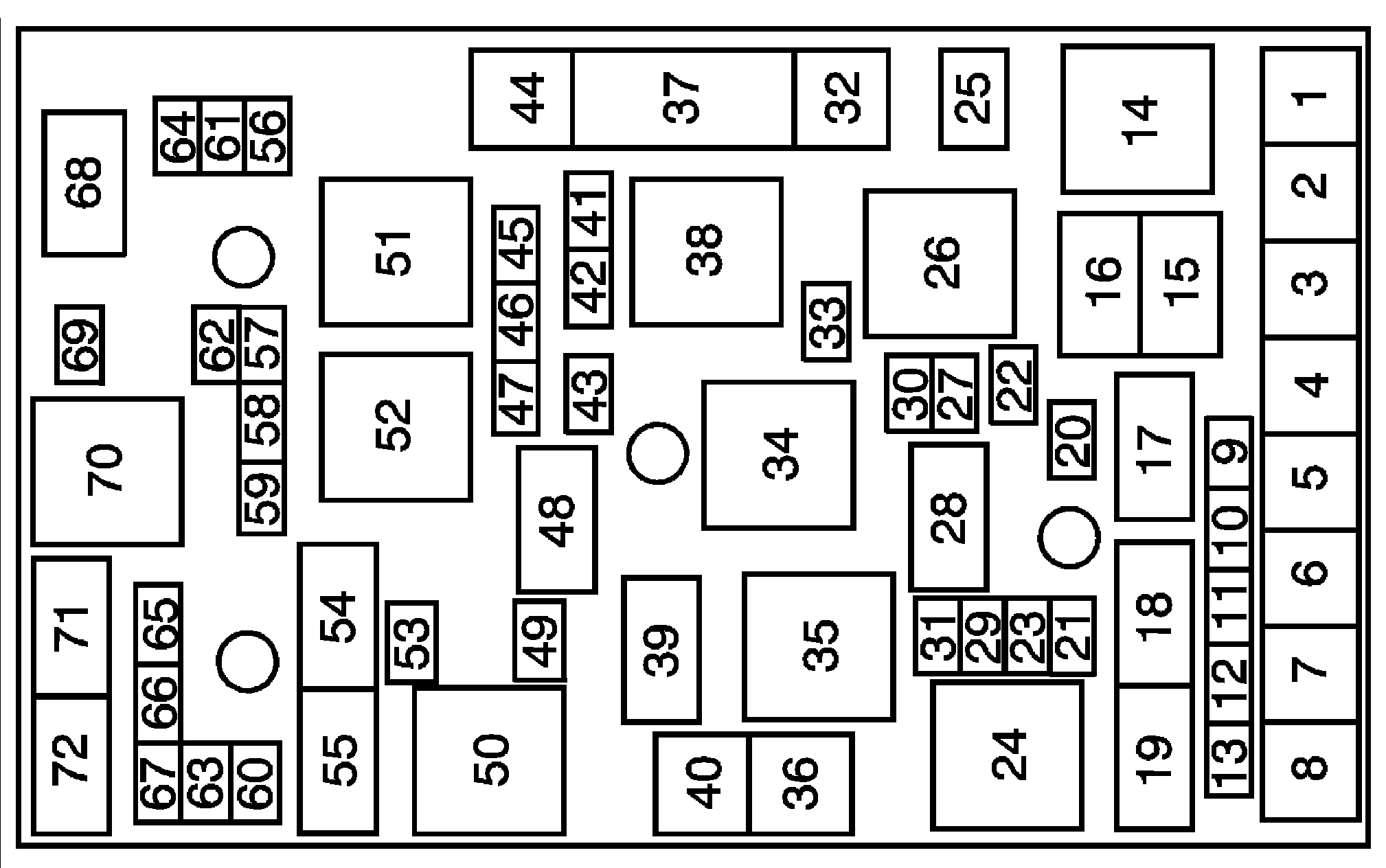 The underhood fuse block is located in the engine compartment on the passenger side of the vehicle.