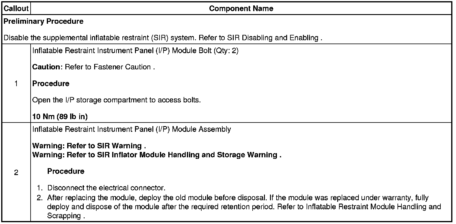 Instrument Panel Inflatable Restraint Module Replacement (Sky)