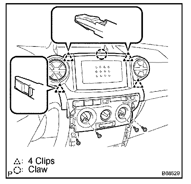 b. Disengage the 4 clips and the claw, and then remove the instrument cluster finish panel sub assy CTR.