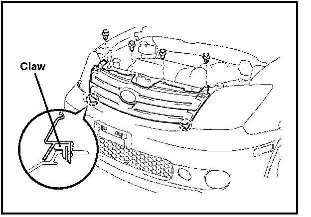 A. Disengage the 2 claws, and remove the 4 clips and radiator grille.