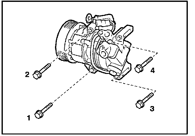 Tighten the bolts in the order shown in the illustration to install the compressor assembly.