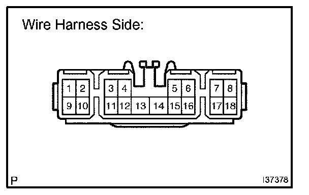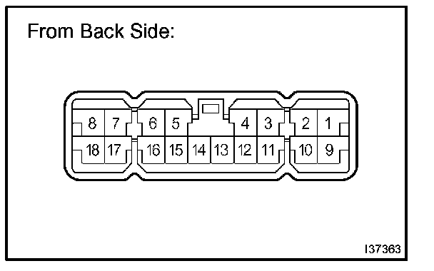 b. Connect the connector to A/C amplifier and inspect wire harness side connector from the back side, as shown in the illustration.