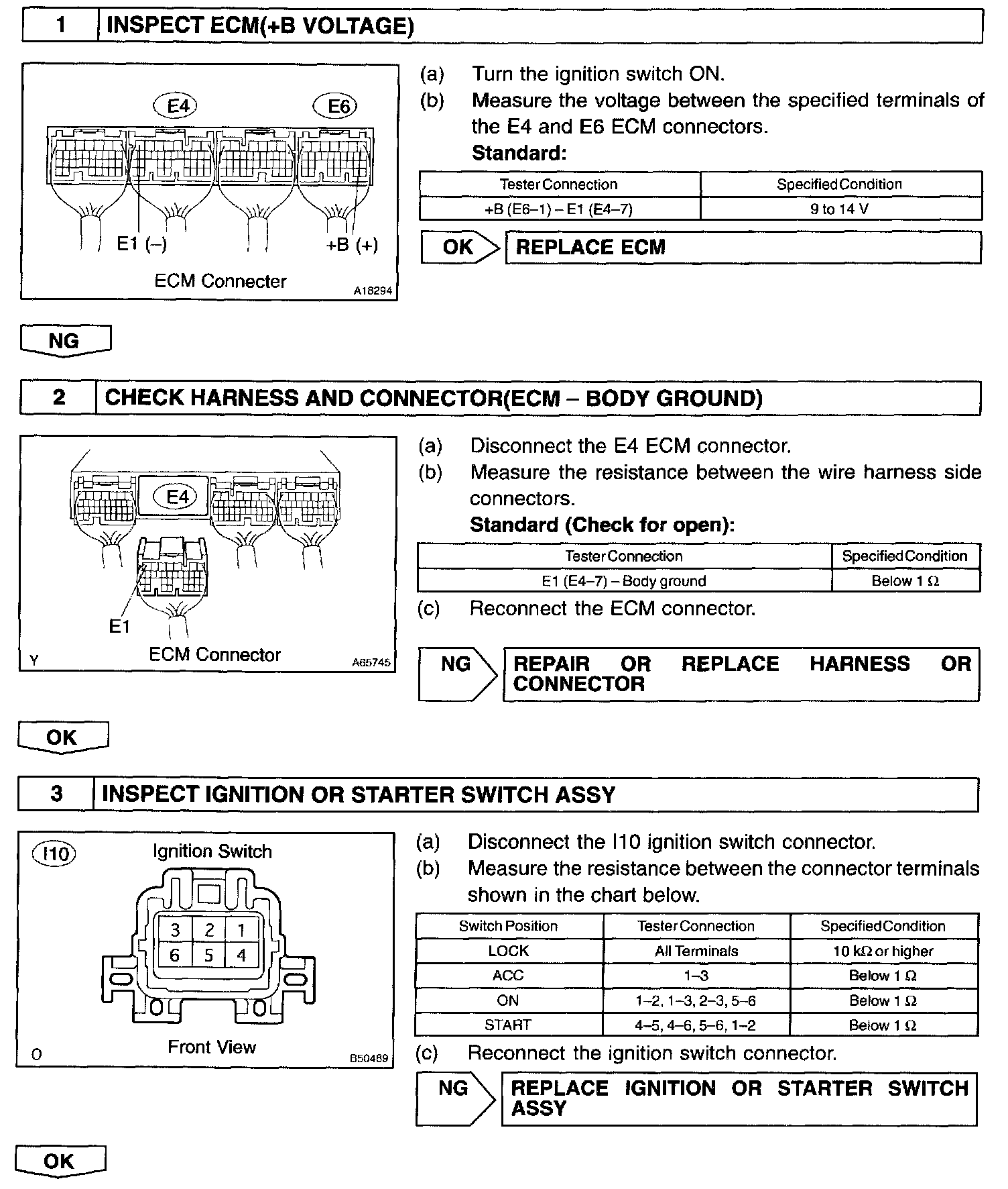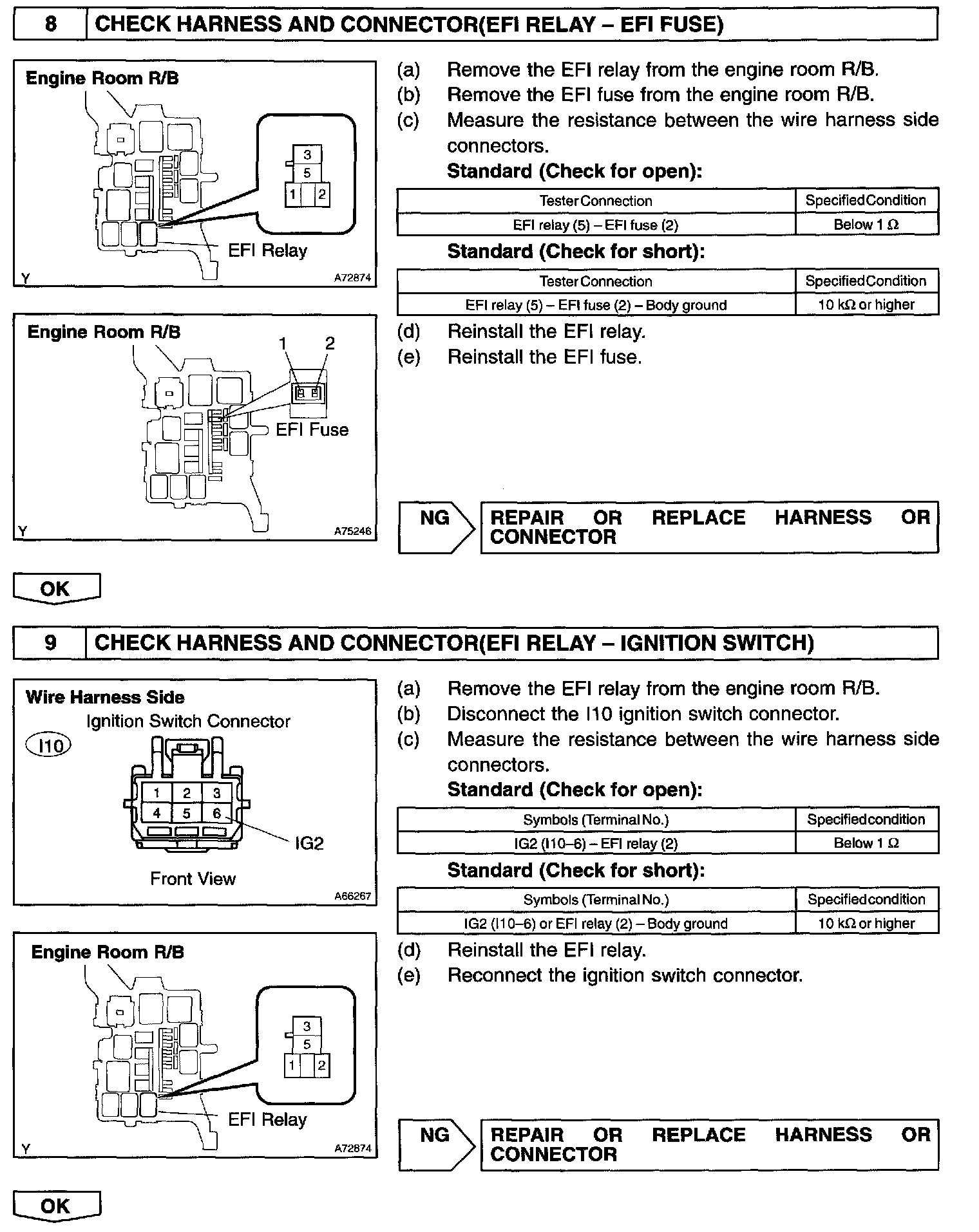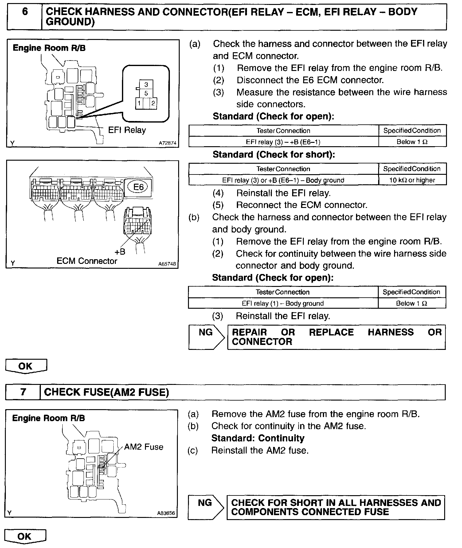 This signal causes current to flow to the coil, closing the contacts of the EFI relay and supplying power to terminal +B of the ECM.