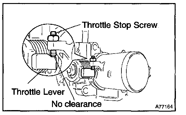 4. Check that there is no clearance between the throttle stop screw and throttle lever at the throttle valve closed position.