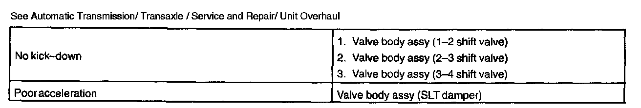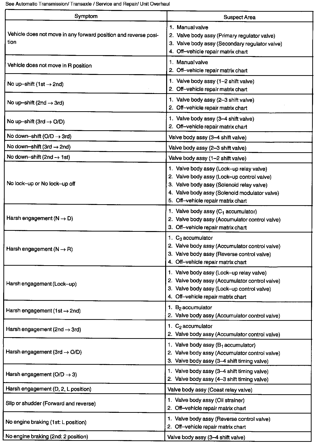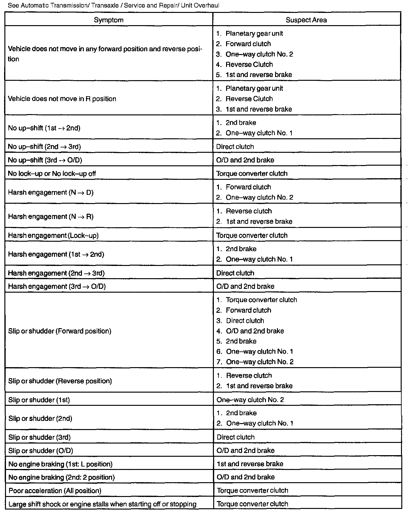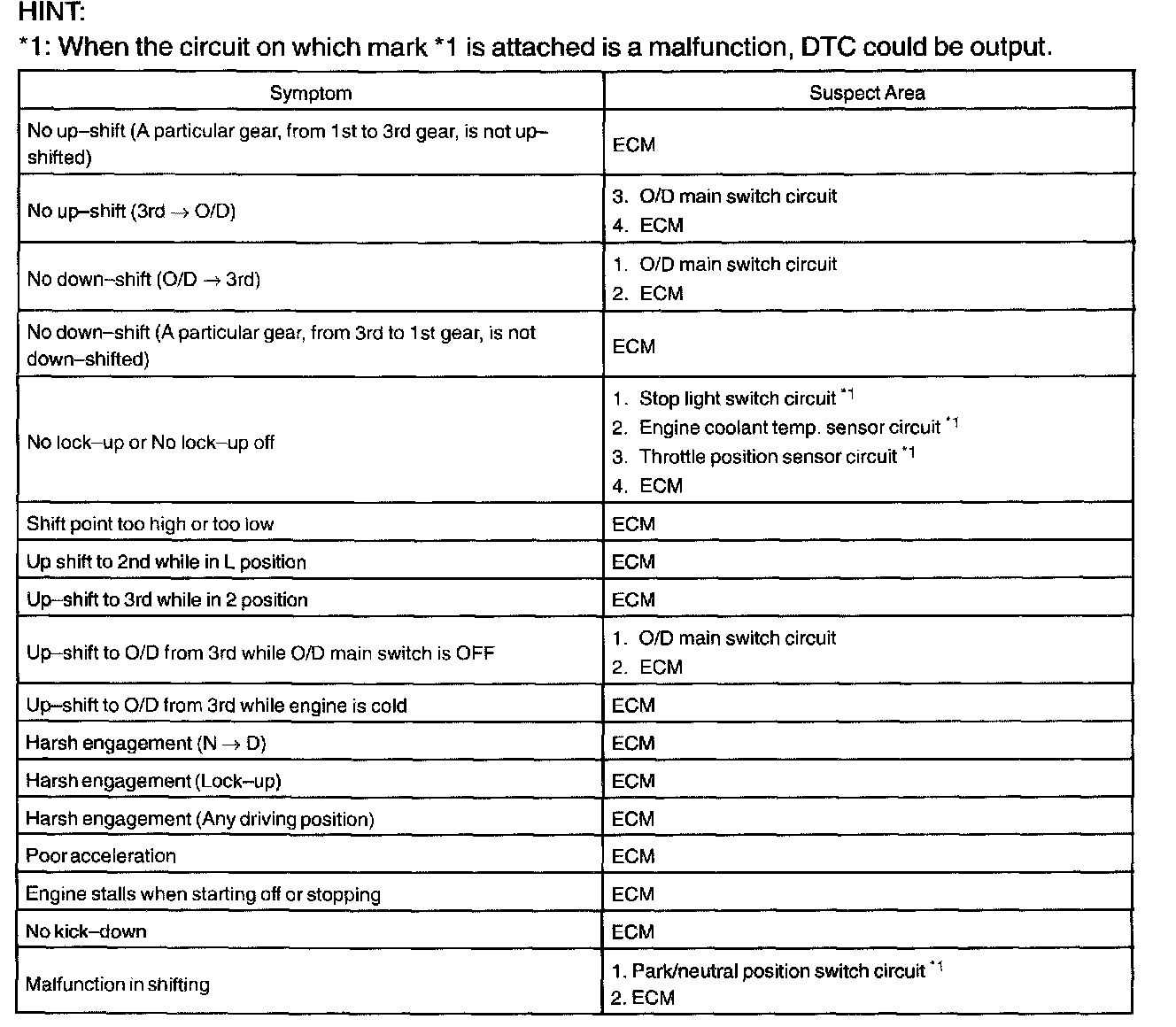 PROBLEM SYMPTOMS TABLEHINT: If a normal code is displayed during the DTC check but the trouble still occurs, check the circuits for each symptom in the order given in the charts and proceed to the given for troubleshooting.