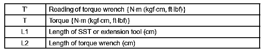 2. In this, only the specified torque is described. In case of using SST or extension tool, calculate the reading of the torque wrench by the following formula.