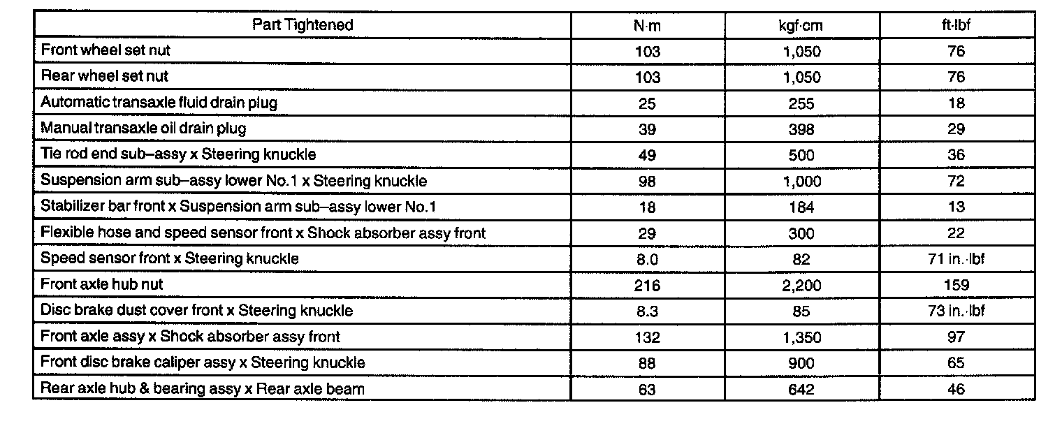 Torque Specification