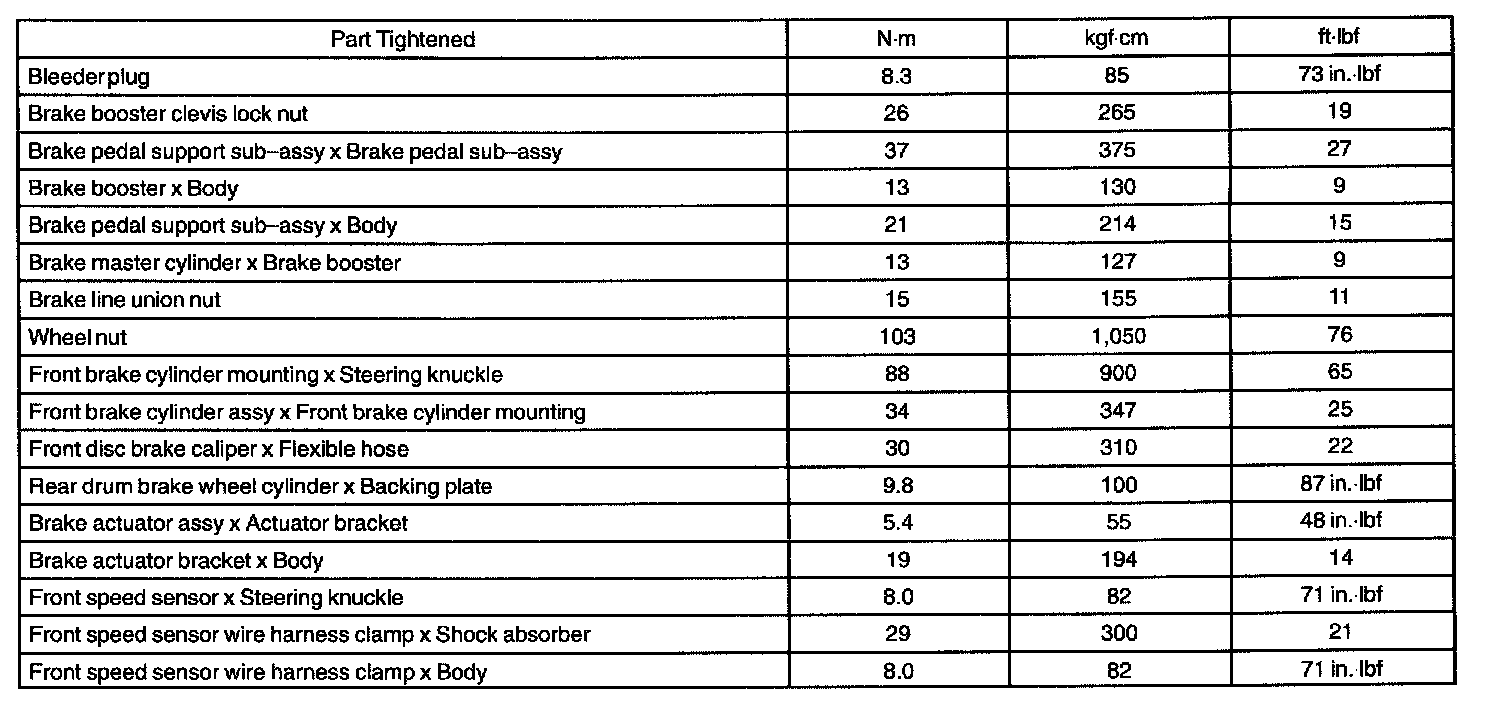 Torque Specification