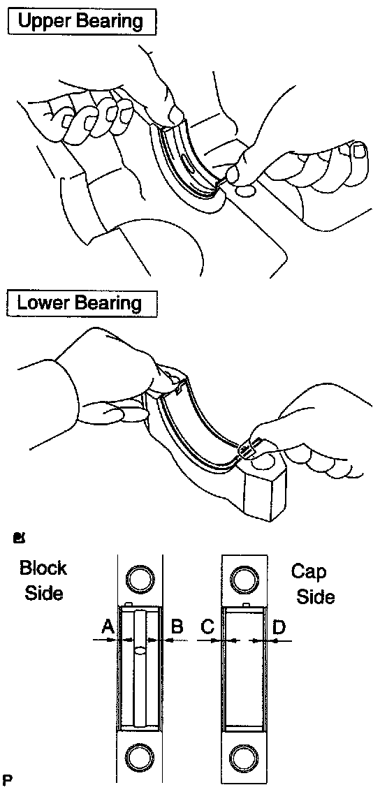 ^ Clean the backside of the bearing and the bearing surface of the connecting rod cap and keep free of oil and fat.