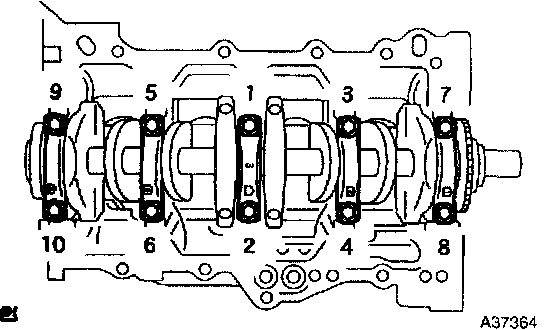 i. Retighten the bearing cap bolts by 90° in the same sequence as step (g).