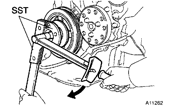 f. Using SST, tighten the bolts in several steps by the specified torque.