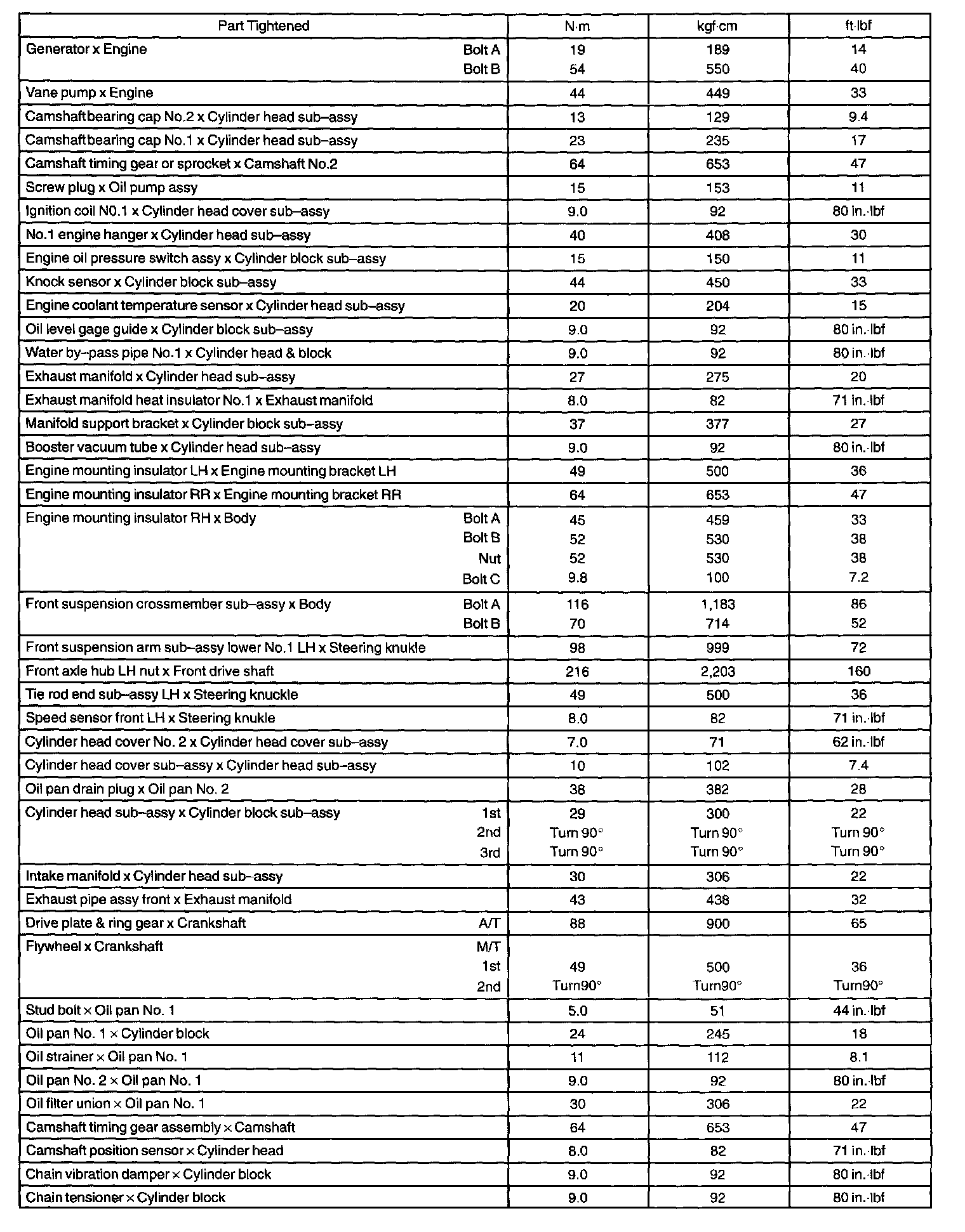 Torque Specifications