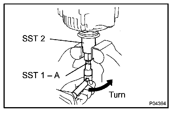 b. Hold SST 1-A with a torque wrench, and tighten SST 1-B clockwise to the specified torque.
