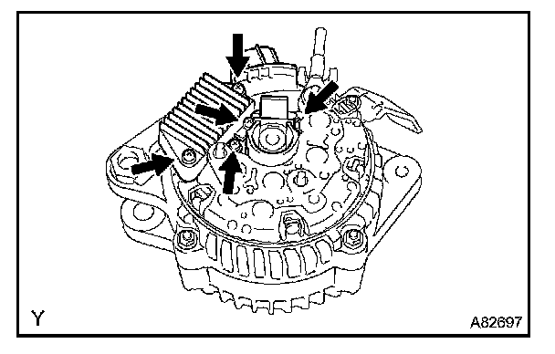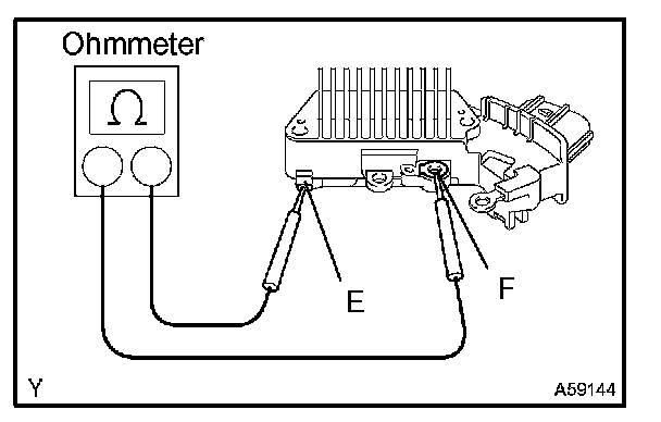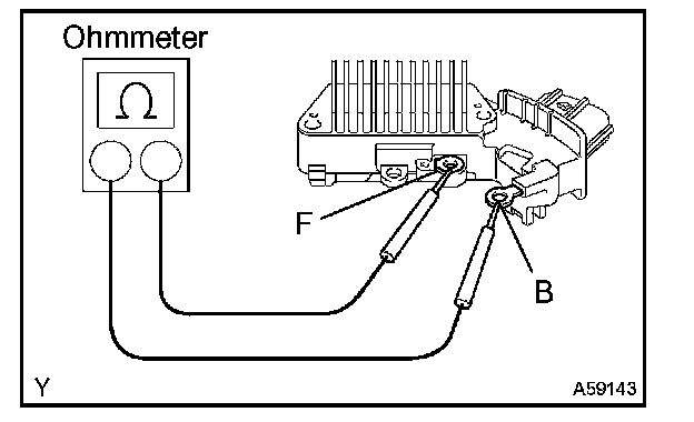 1. Using an ohmmeter, connect one tester probe to each negative (-) terminal and the other to each rectifier terminal.