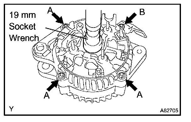 a. Using a 19 mm socket wrench and press, slowly press in the rectifier end frame.
