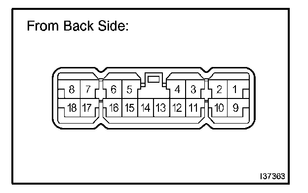 b. Connect the connector to A/C amplifier and inspect wire harness side connector from the back side, as shown in the illustration.