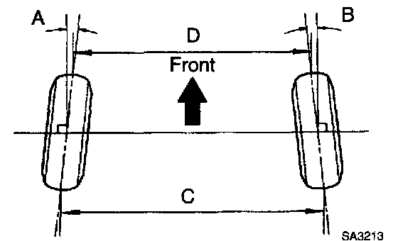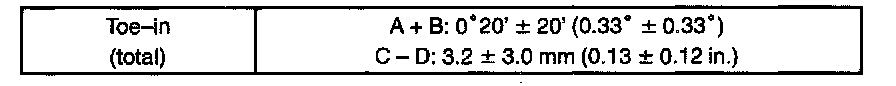 If the toe-in is not within the specified value, inspect and replace the suspension parts as necessary.